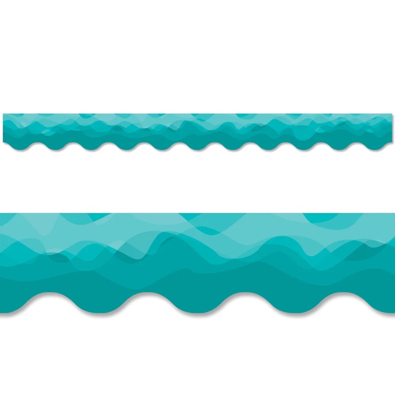 Simple and playful, this Waves of Teal Border evokes a feeling of nature and water. The vibrant blend of shades of teal creates a serene look that is perfect for bulletin boards with themes such as the ocean, under the sea, the beach, and sea animals. Layer multiple borders together to create ocean waves! These new EZ borders come in smaller strips, which are easier to manage and store. Each package comes with enough borders to complete 2 full bulletin boards.