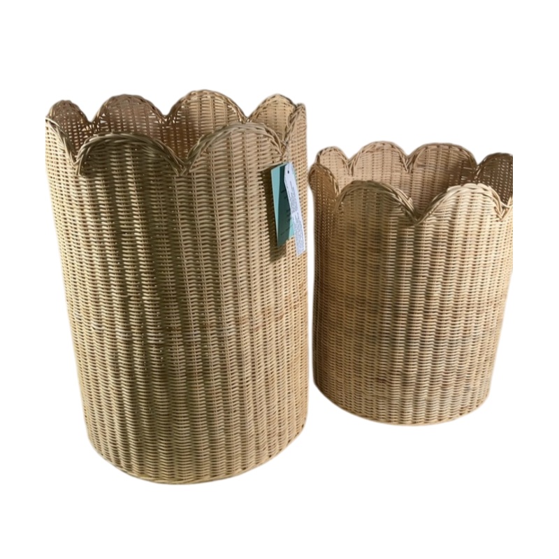 Discover the perfect home goods with our collection crafted in collaboration with Misha & Puff. Each piece features unique textures and a rich vintage-inspired palette. Handwoven from rattan, this set of 2 includes a small and large basket for versatile organization.