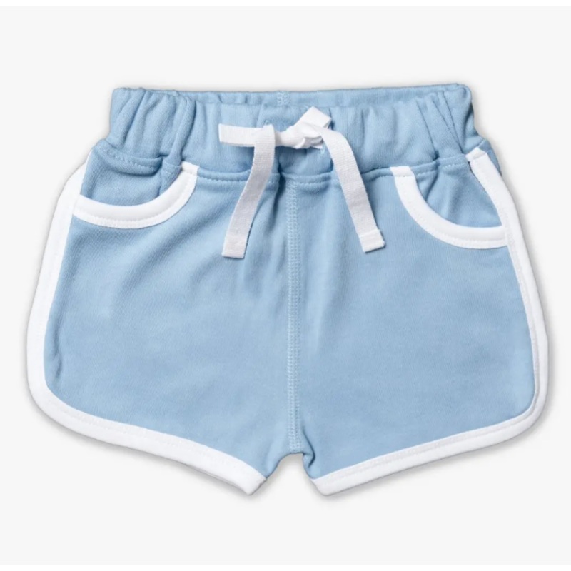 Matches perfectly with our Whales print, from our Seascapes collection Made with super soft, GOTS certified organic cotton, these retro-styled shorts feature contrasting white trim and a quality draw-string for easy adjustment. * 100% GOTS certified organic cotton, gentle on babies’ delicate skin * Retro-styling with contrasting white trim * Double stitched hems and bindings * Sewn-in elastic and drawstring for adjustable waist * Flat seam stitching means no irritating inner seams * Iron-on label means no itchy tags * Whale Blue