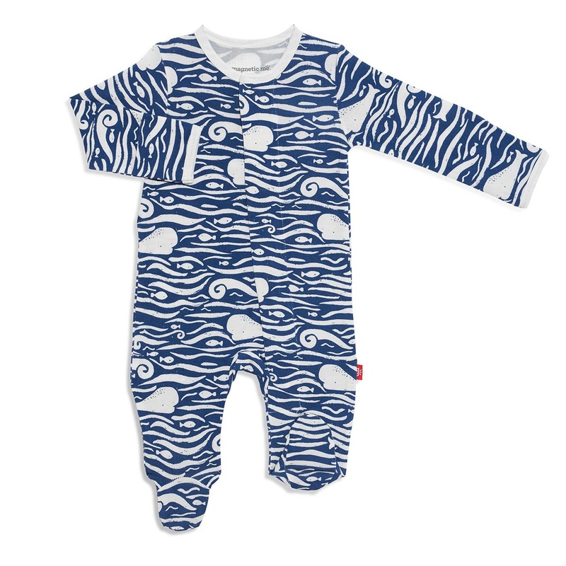 A soft, stylish all-day and all-night wardrobe staple with smart magnetic fasteners that makes changing time painless. With our no over-the-head design, simply open the outfit, insert baby, and BOOM, DONE! – the footie practically closes itself. Machine wash as directed.