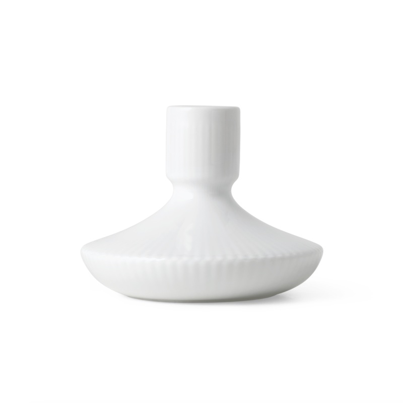 Founded under the reign of Danish Dowager Queen Juliane Marie in 1775, Royal Copenhagen is one of the oldest and most respected brands in the world. Crafted with superior materials and held to the highest standards, their fine porcelain is meant for everyday use. The White Fluted series is minimalist and contemporary style, offering a gorgeous, modern base to which other fluted styles can be added effortlessly. The White Fluted Candlestick 8cm/3″ is ideal base for when your table top, or mantle, could use an amber glow.