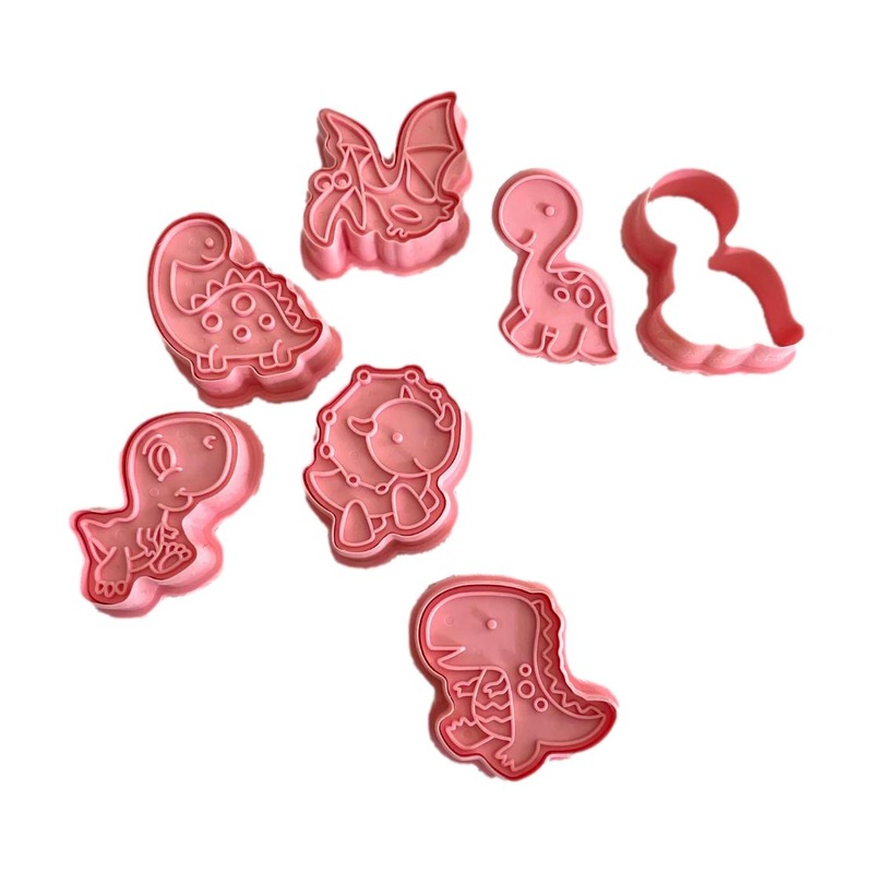 This set includes 6 large dinosaur themed stampers and 6 matching cutters.