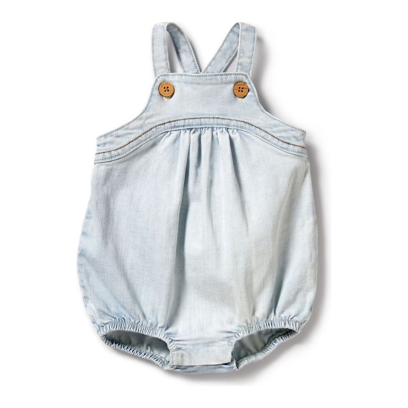 Shipping Late OctoberIntroducing this denim bodysuit from Wilson and Frenchy, perfect for your little one this summer.Made from organic cotton with a hint of elastane, it offers a comfortable stretchy fit. With adjustable shoulder straps and mock wood butt