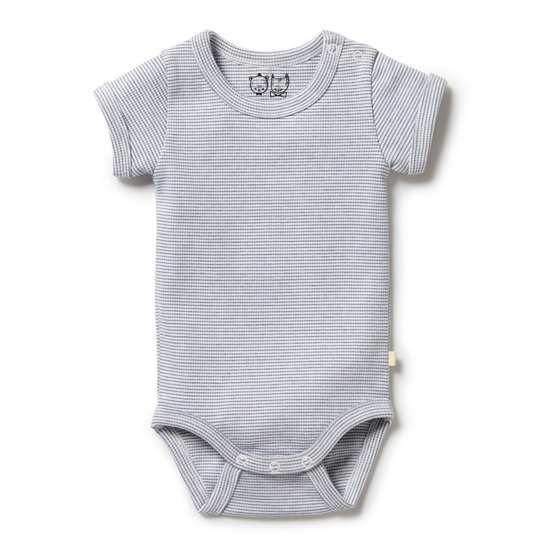 Wilson+Frenchy Organic Cotton Striped Short Sleeve Onesie – Rain Drop (Petit Baby, Up to 3.5 Kg)