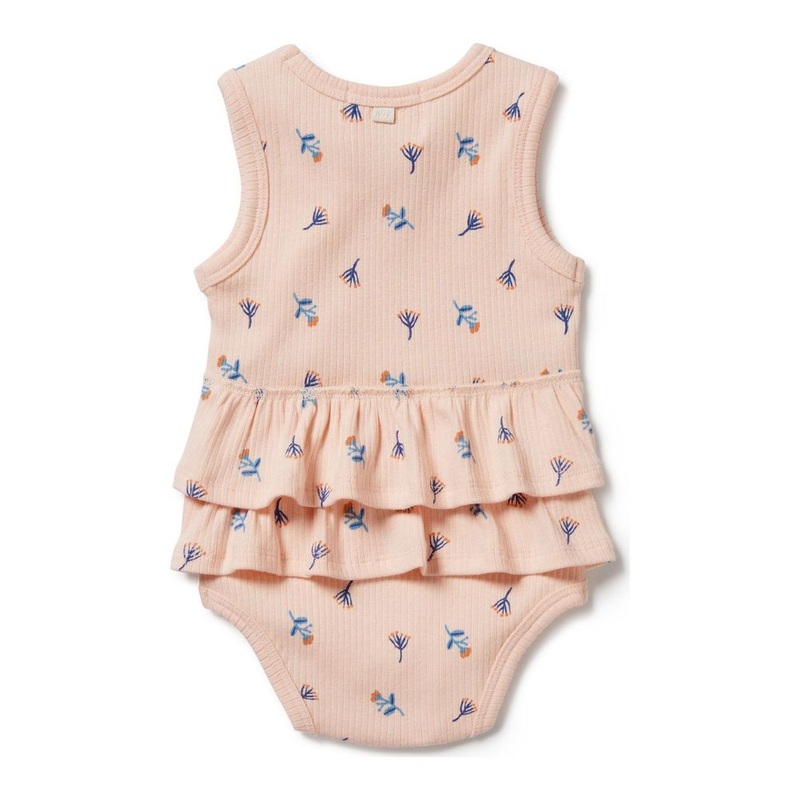 With a soft, comfortable fit and cute ruffle detail at the bottom, this ruffle detail bodysuit by Wilson and Frenchy is both fun and functional. Featuring an all-over illustration, snap crotch for quick and easy nappy changes, and fully machine washableFea