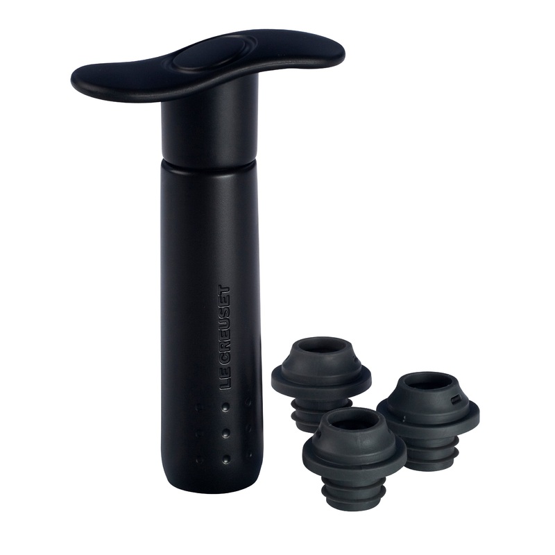 Recognized for its strength and durability, as well as its beauty and quality, Le Creuset produced the first enameled cast iron cookware nearly a century ago. A tradition of maintaining the finest culinary craftsmanship, combined with the latest innovations, means Le Creuset is known for blending classic form with real function and that it’s made for home cooks and professional chefs alike. The Wine Pump and 3 Stoppers create a firm seal that preserves the flavor and aroma of opened wine for up to a week.