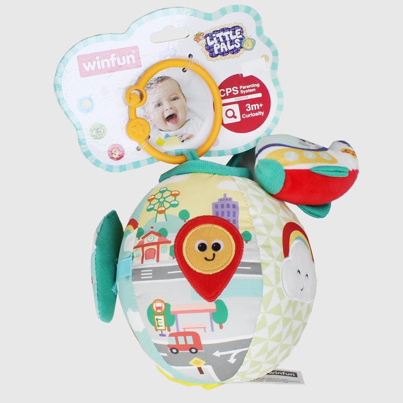 Lil Traveler Activity Ball WinfunMulti-activity ball for little hands to exploreDifferent textured fabrics with chime bell inside, movable hot air balloon, and fly-with-me airplaneDifferent fabric patterns capture babys attention and focusEasy ring attachm