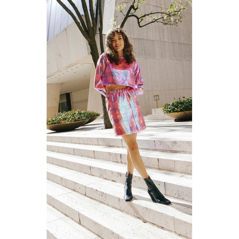 • Stylish two-piece set: crop top and skirt.