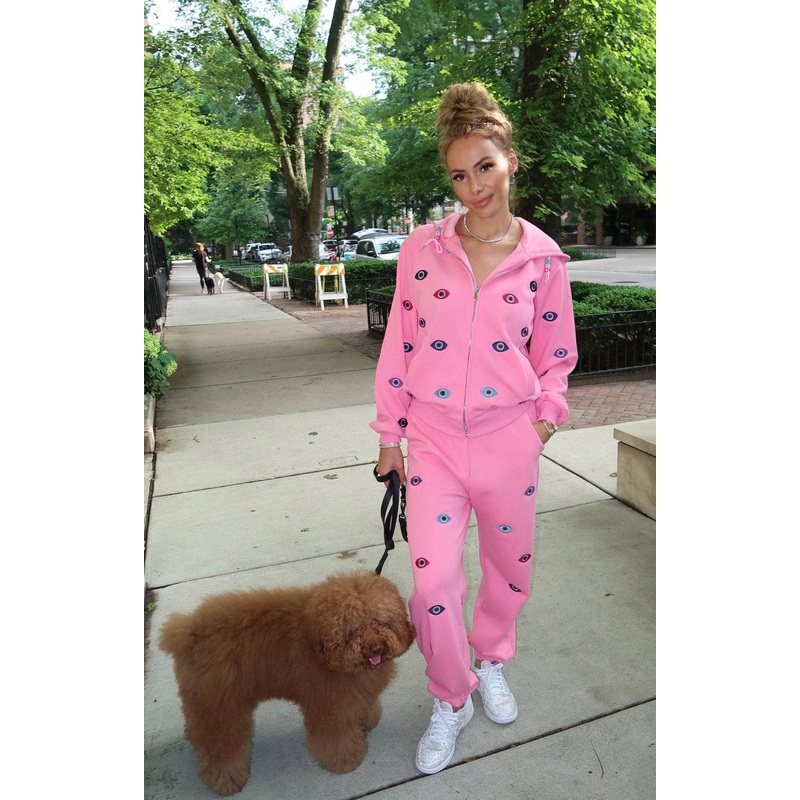 Women’s Evil Eye Hoodie Set Adult Small Pink