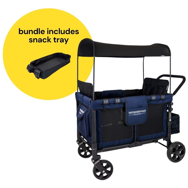 WonderFold W4 Original Quad (4 Seater) Stroller Wagon + Snack Tray Bundle – Navy