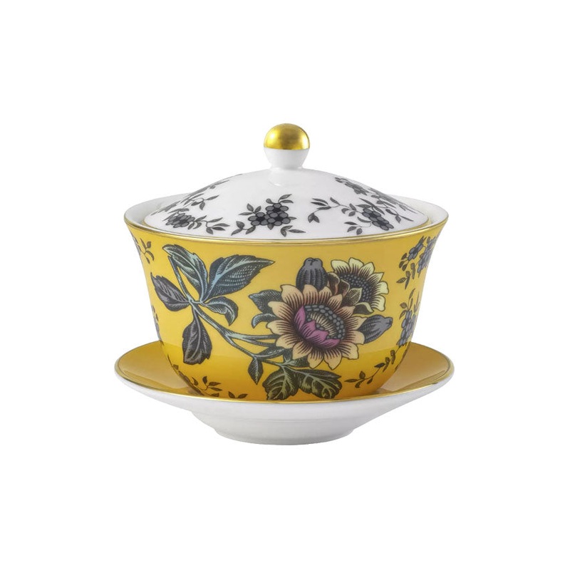 For over 260 years, Wedgwood has produced timeless, eclectic stoneware and china that has graced the tabletops of kings, queens, and some of the finest dining rooms in the world. From its factory inBarlaston, England, the brands signature dishware and household items are thrown, modeled and decorated by artisans who spend a lifetime mastering their craft. The Wonderlust collection is an eclectic assortment of tableware and drinkware that pays homage to far-flung destinations all over the world through whimsical illustrated patterns.Transport your guests at tea hour with sugar or other delights from the Wonderlust Lidded Bowl in Yellow Tonquin.