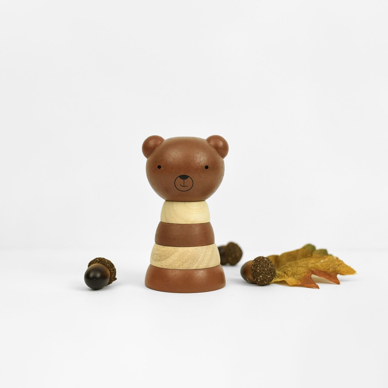 This sweet wooden bear is ready to stack any which way, let your little one decide! Wee Gallerys wood stacker has four removable rings plus the bears head, all of which are designed to help baby’s hand-eye coordination, fine motor skills, and imagination with the added bonus of looking adorable on the nursery shelf! Made from sustainable Rubberwood with a child-safe finish.