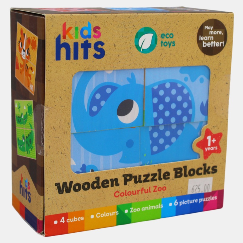 G21159575601Wooden Puzzle Blocks Colourful Zoo