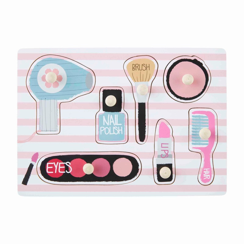 The MakeupPuzzle features shapes of hair dryer, makeup, nail polish and more.