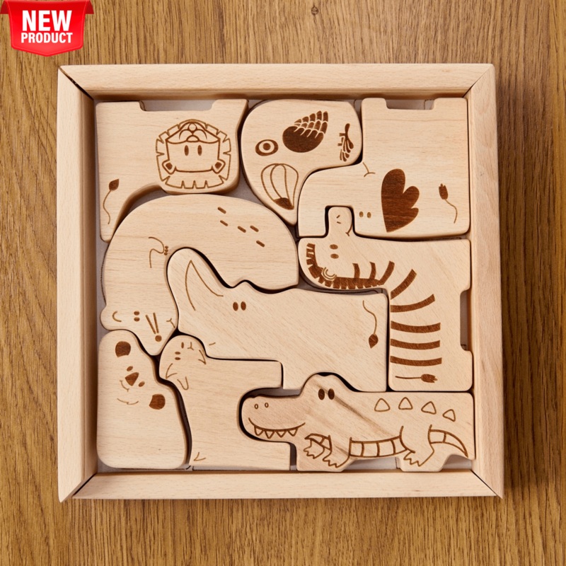Bring Learning and Joy Home with this Montessori Wooden Safari Animal Puzzle Box