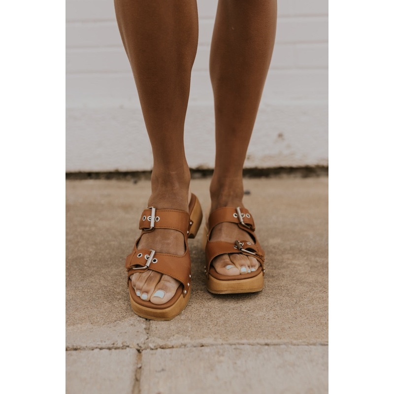 The Woods Sandal comes in a gorgeous orange-brown color that will make pairing with all your favorite outfits effortless. These sandals were thoughtfully designed with an open-toe classic with studs lining each side, padded insole, faux wooden heel, adjustable straps, + a rubber outsole. Slip-resistant. Light. Leather. The perfect summer sandal!