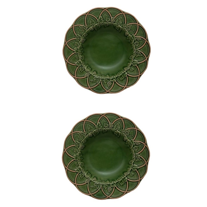 Named for the 19th-century illustrator, sculptor, and ceramicist,Bordallo Pinheiro continues the iconoclasts legacy of unique art by applyingancestral manufacturing techniques and naturalistic motifsinspired by Portugals flora and faunato versatile and decorative tabletop pieces.In an earthy green and brown, theWoodsPasta Platebringseveryday whimsy to a meal.