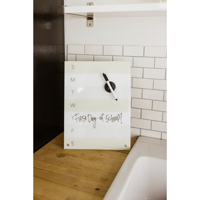 This reusable weekly planner adds the perfect amount of class to your office or home. Theres enough space to write down a weekly menu, reminders, + notes for everything in the home or office. This glass planner makes a wonderful addition to your home and makes a great gift for newlyweds, a friend, a loved one, or keep for yourself (no judgment here).