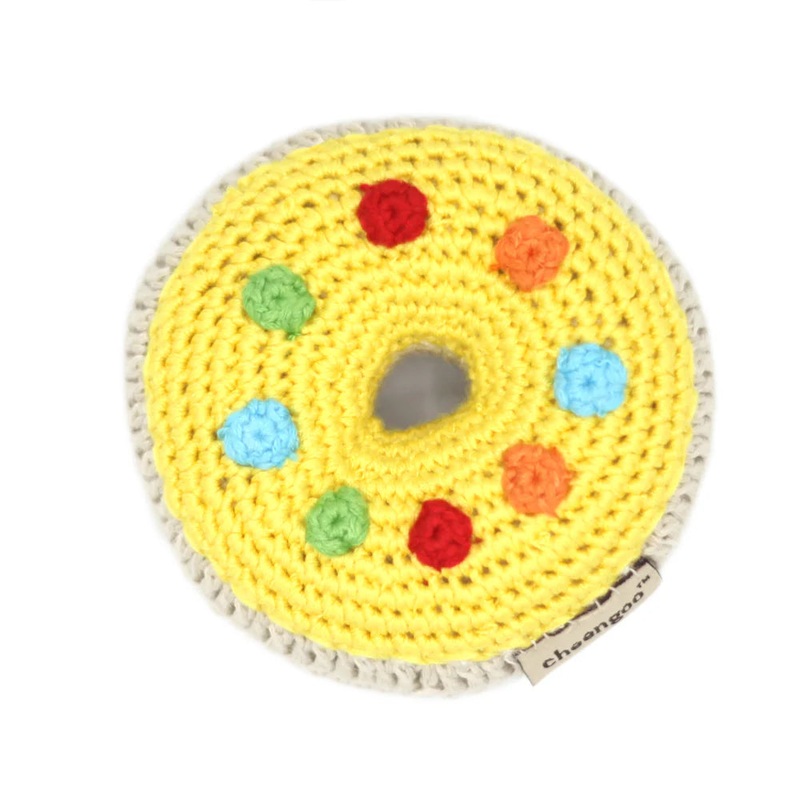 Who doesn’t love donuts? Even babies can get a taste of the good stuff with Cheengoo’s soft chocolate rattle. Entirely hand crocheted using 100% organically grown and sustainably harvested bamboo. Bamboo yarn is soft, naturally antibacterial and non-allergenic – perfect for babies.