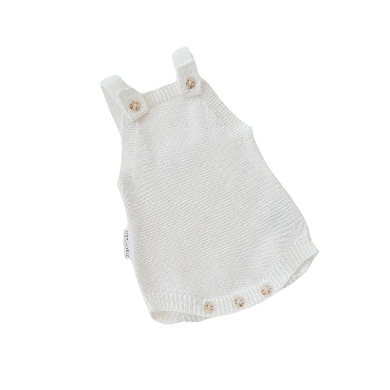 By Ziggy LouA gorgeous romper in our neutral Milk colour, perfect for custom embroidery. Layer with our tees or bodysuits for the ideal outfit. Buttonsat crotch for easy nappy changes andbuttons on the front of the shoulder to adjust straps and for easy on