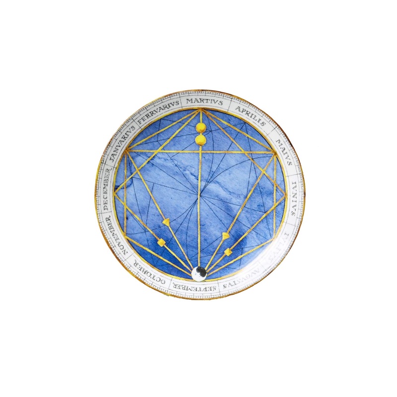 Each plate in the Laboratorio Paravicini Zodiac collection is handcrafted and hand-decorated by artisans at the family’s ceramic workshop in Milan. Featuring a round center in blue with gold lines connecting the twelve months of the year written in Latin, the ZodiacDessert Plate hasa glossy finish and gilded edgesand will add sophistication toany modern place setting. It’s also sure to be a conversation starter when you gather around the table.