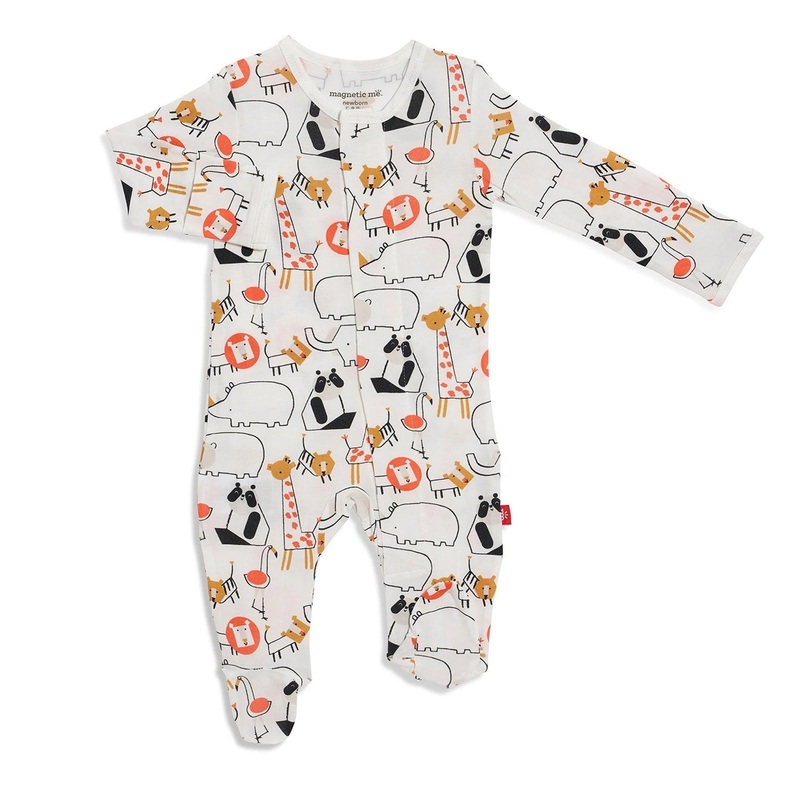 A soft, stylish all-day and all-night wardrobe staple with smart magnetic fasteners that makes changing time painless. With our no over-the-head design, simply open the outfit, insert baby, and BOOM, DONE! – the footie practically closes itself. Machine wash as directed.